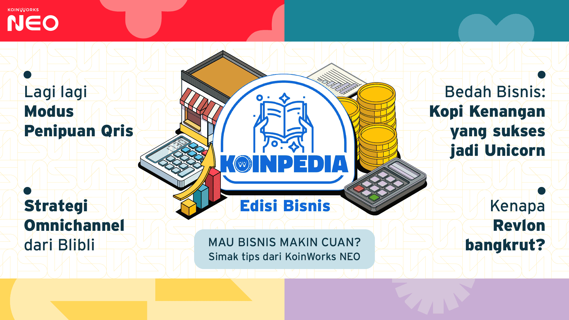 Mulai dari kemudahan yang ditawarkan oleh sistem pembayaran QRIS, hingga ke strategi bisnis omni-channel, KoinPedia Edisi Bisnis kali ini akan membantu kamu memperluas wawasan usaha, terutama untuk bisnis yang sedang kamu jalani.