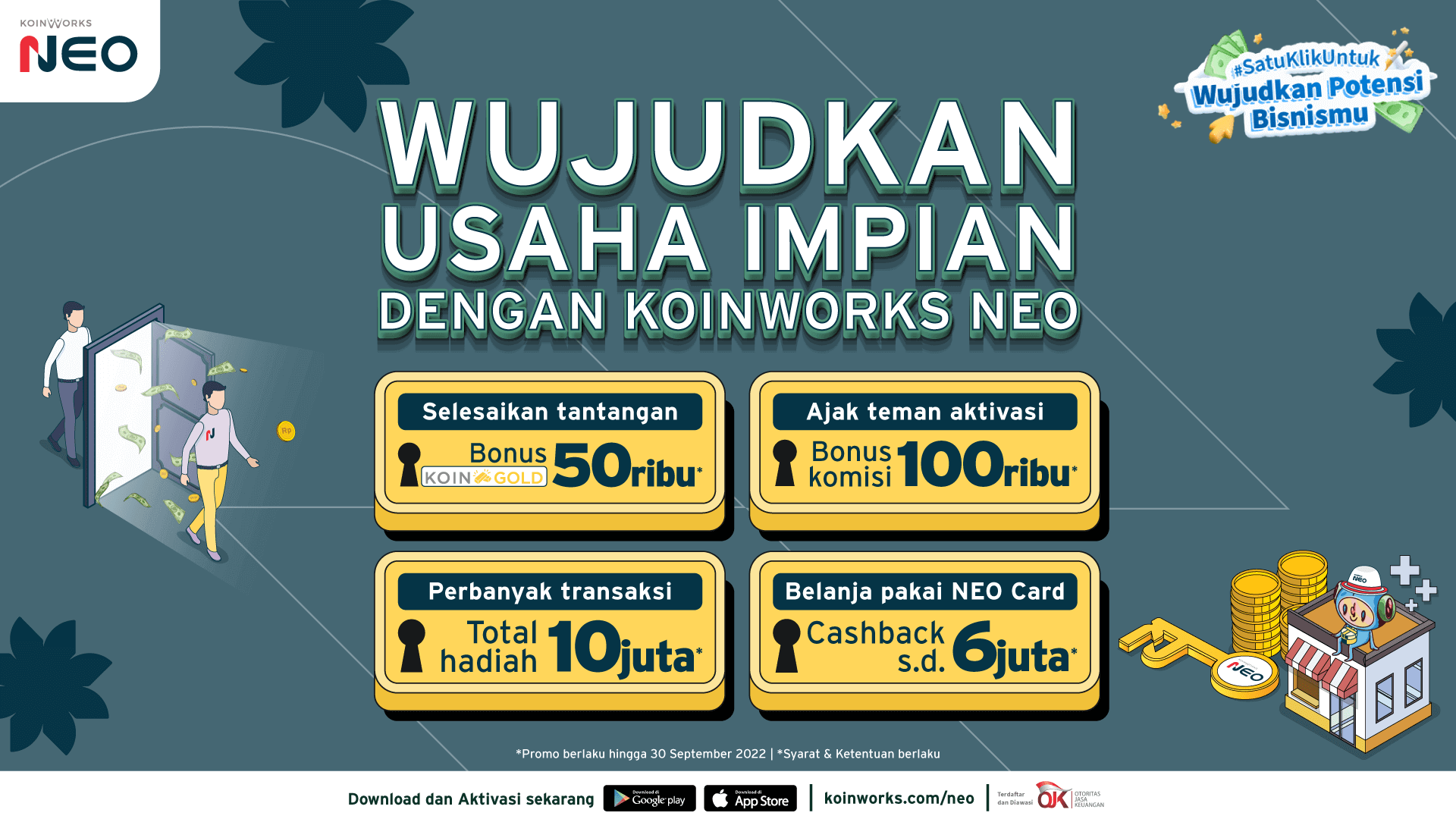 Dengan KoinWorks NEO, kamu hanya membutuhkan #satuklikuntukwujudkan bisnis impian kamu!