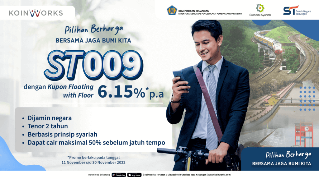 Kalau kamu belum tahu, ST009 hadir dengan format Green Sukuk Ritel yang diterbitkan pemerintah sebagai wujud komitmen dan kontribusi untuk mengembangkan pasar keuangan syariah dan membiayai proyek ramah lingkungan.