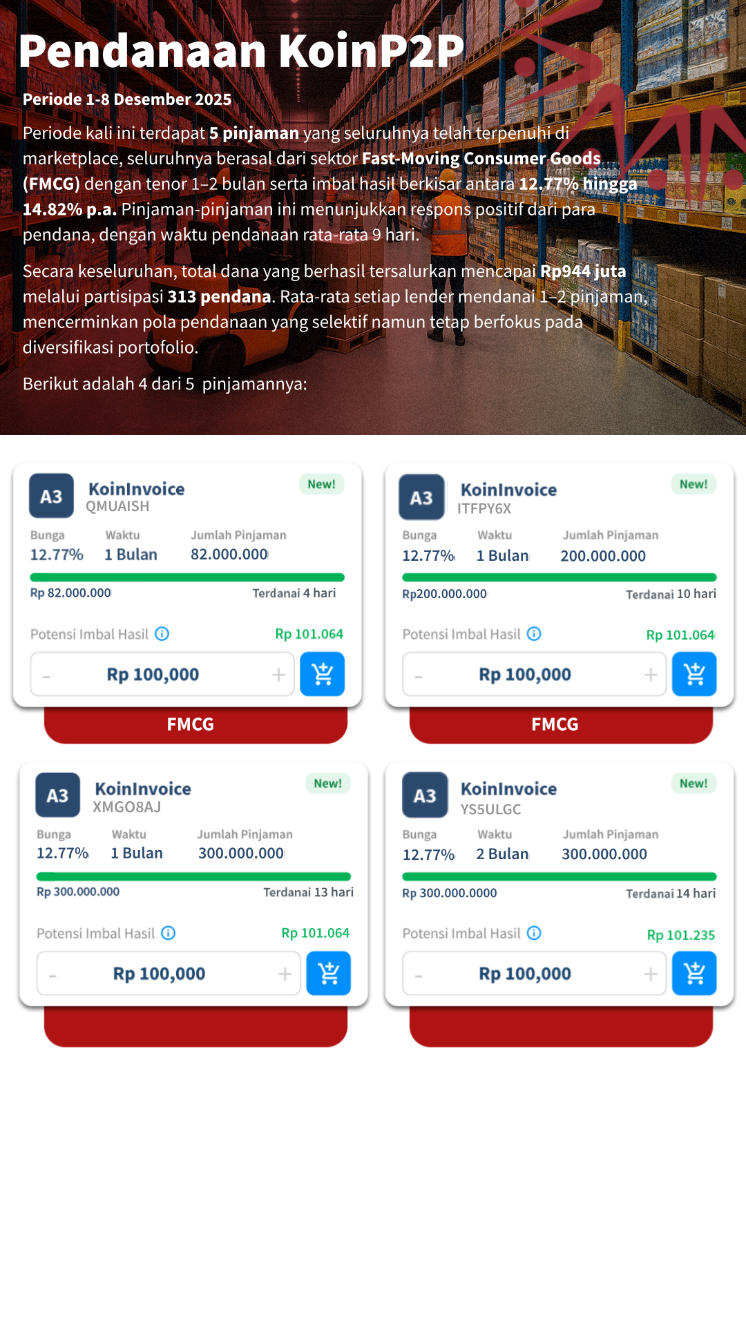 Beranda - Blog - Rekap Pendanaan KoinP2P 1-8 Desember 2025