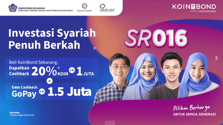 Beli SR016 di KoinBond sekarang dan dapatkan cashback 20%, extra rate 5%, hingga cashback GoPay Rp1,5 juta!